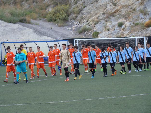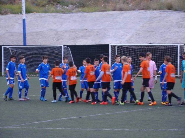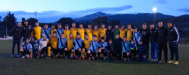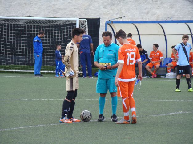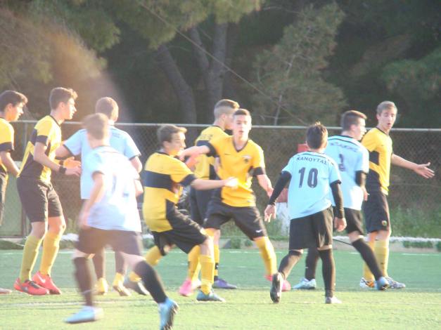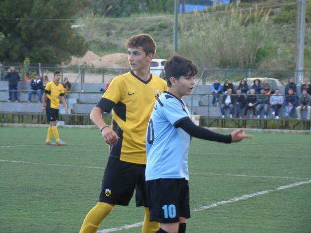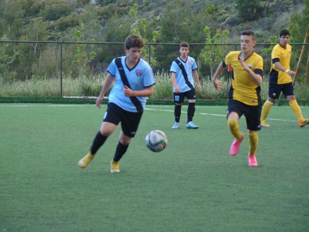 (U-15 teams of ERMIS FC (blue) and AEK FC (yellow))