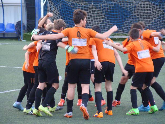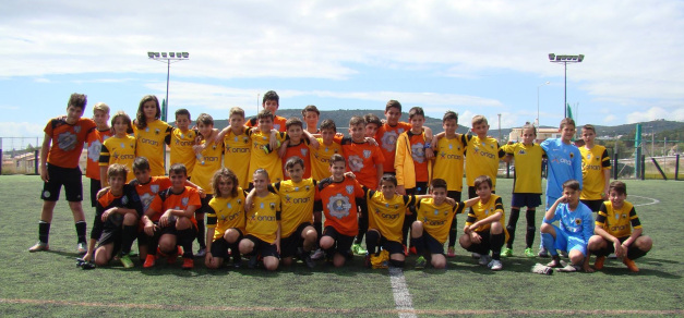 (U-13 teams of ERMIS FC (orange) and AEK FC (yellow))