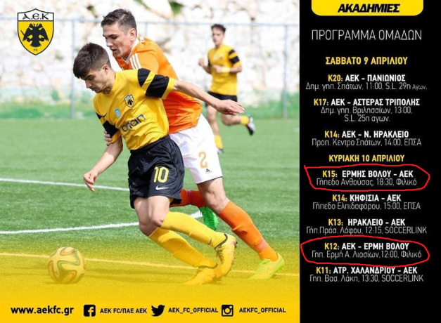 ERMIS FC - Volos Football Academies travelled the past weekend to Athens to play against AEK FC and ATROMITOS FC (both of these teams play at the Superleague-Championship).
